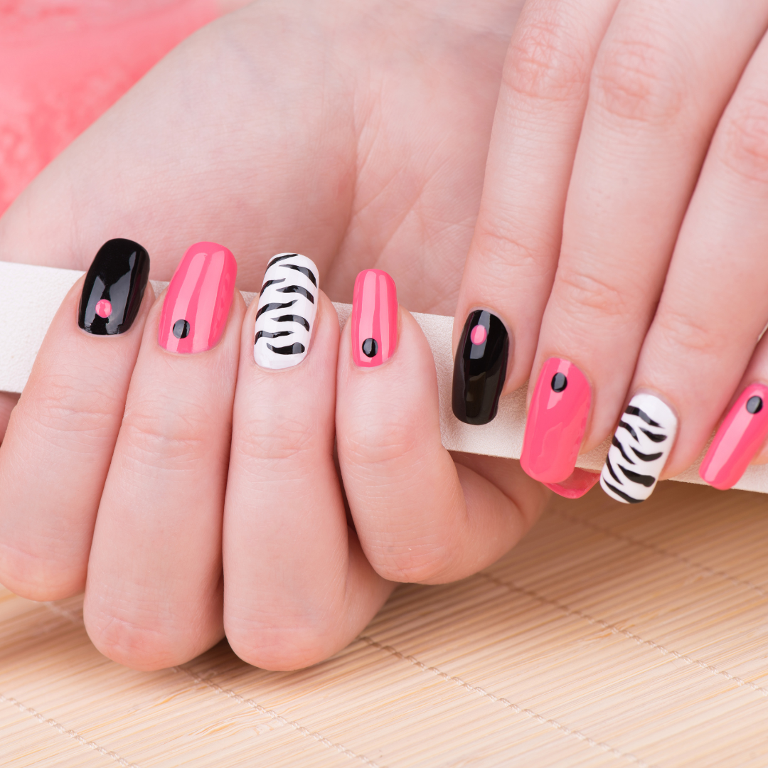 Custom nail designs from elegant simplicity to bold statement art, priced according to detail and complexity: